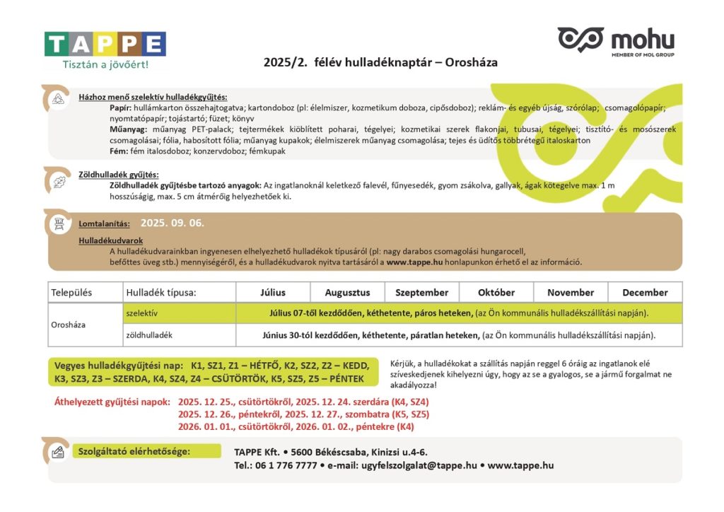 2026. 12. 25., péntek, áttéve 2026. 12. 24., csütörtökre (Kommunális hulladék, K5)